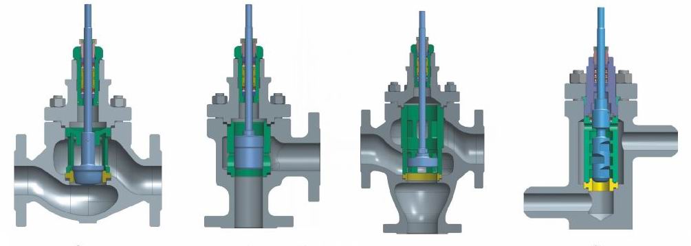 角形閥體除外形為直角形外,其他與直通閥體完全通用。具有結(jié)構(gòu)緊湊、道路簡單、阻力小等特點。特別適用于易枯焦,易堵塞,高粘度的工況。